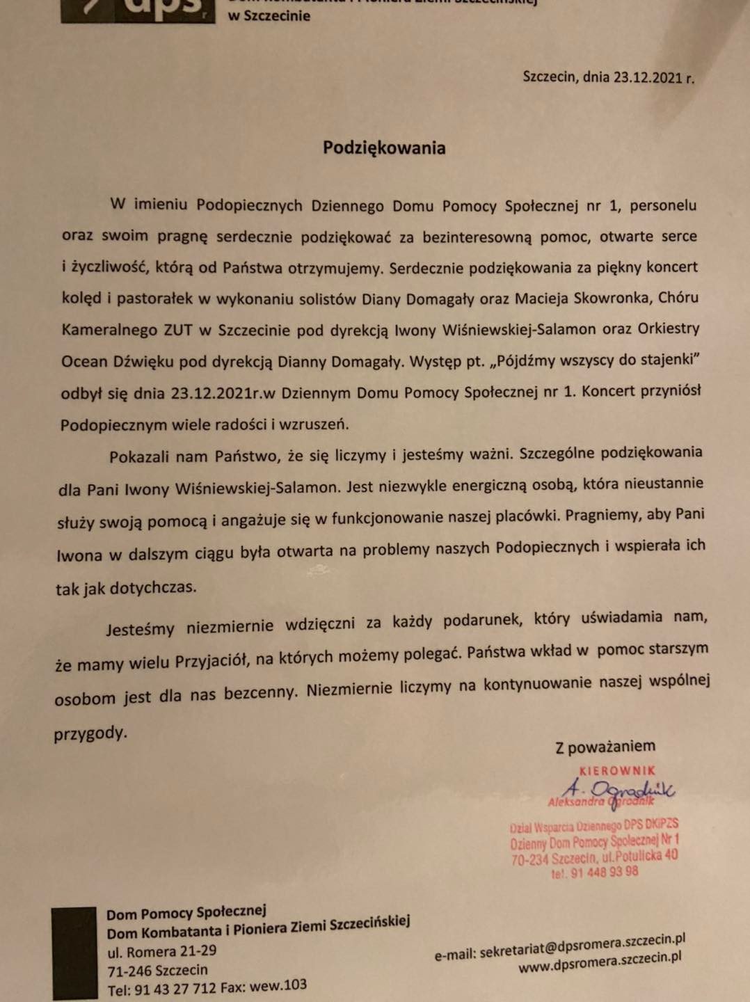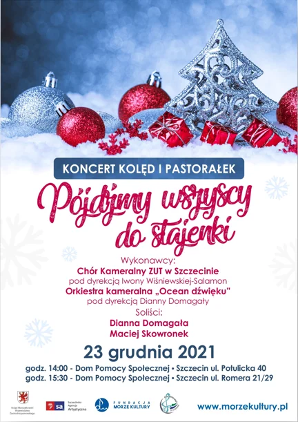 W ramach zadania sfinansowanego ze środków Urzędu Marszałkowskiego odbył się cykl 2 koncertów o tematyce bożonarodzeniowej pn. „Pójdźmy wszyscy do stajenki!”, podczas których zaprezentowała się Orkiestra Kameralna „Ocean dźwięku” pod dyrekcją Dianny Domagały oraz Chór Kameralny ZUT w Szczecinie pod dyrekcją Iwony Wiśniewskiej-Salamon. Kolędy i pastorałki wybrzmiały w wykonaniu chórzystów i solistów oraz publiczności. Projekt był skierowany do szerokiego grona odbiorców reprezentujących różne grupy wiekowe oraz środowiska; mieszkańców województwa i był formą międzypokoleniowego kolędowania i odbioru muzyki.