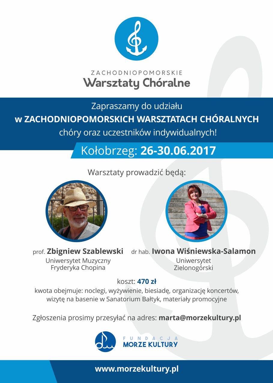 Zapraszamy do udziału w Zachodniopomorskich Warsztatach Chóralnych! 26-30 czerwca 2017, Kołobrzeg Prowadzący: prof. Zbigniew Szablewski i dr hab. Iwona Wiśniewska-Salamon